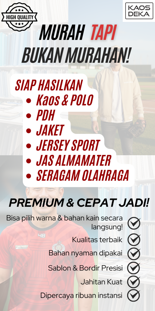 Seperti seragam kaos, jaket, jas almamater, topi. Silakan liat di web kami kaosdeka.com atau silakan chat kami untuk info lebih lanjut